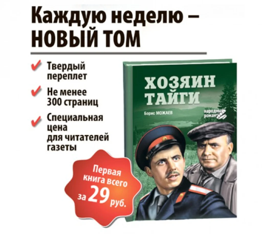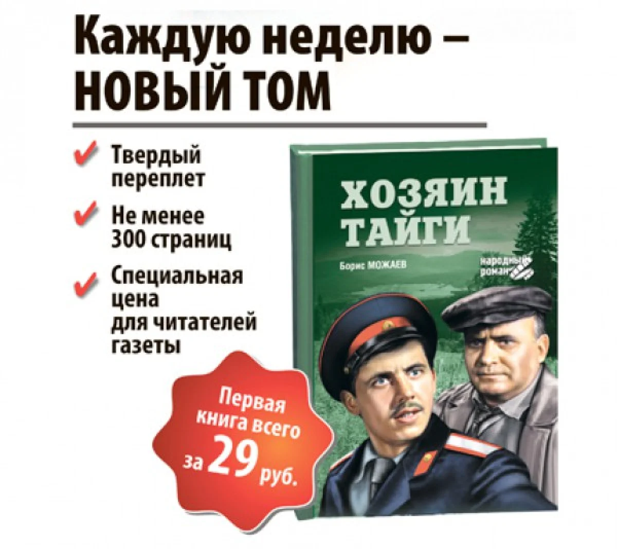 9 октября — первая книга коллекции «Хозяин тайги» по цене 29 рублей.