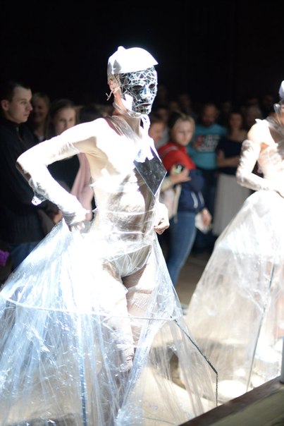 Спустя минуту я поняла, что она имела в виду. По полутёмному залу под музыку, в которой слышалось нечто мистическое, двигалось несколько девушек в полиэтиленовых костюмах и двойных масках-лицах. Таким образом создавался эффект двуликости. Чуть позже на девушках появились полупрозрачные юбки, которые при ближайшем рассмотрении оказались также полиэтиленом, натянутом на каркас. Во время выступления на экране мелькали видеокадры, содержание которых сложно передаётся пересказу – это всё равно, что оформлять в слова причудливый сон. Чаще всего на экране мелькало изображение крупным планом человеческого глаза.