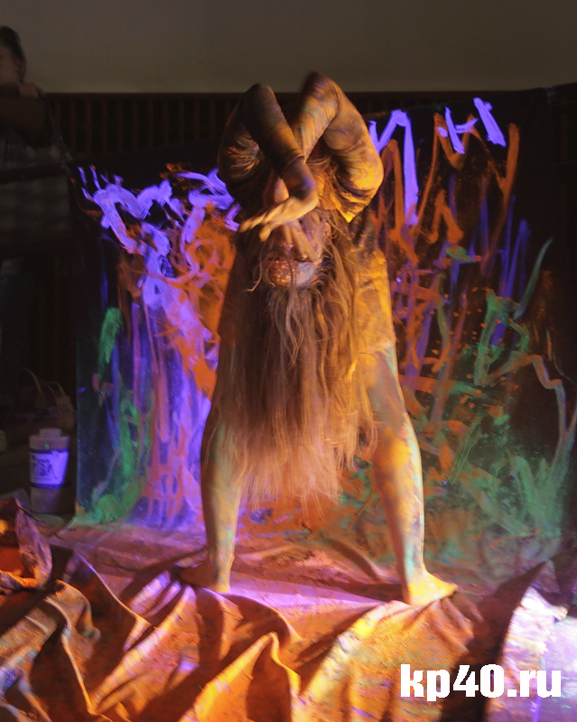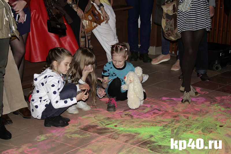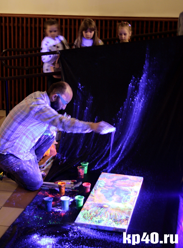 С наибольшим воодушевлением к представлению отнеслись самые маленькие зрители. Сначала они заинтересованно следили за движениями художника, а потом весело чупахались в размазанной по полу светящейся краске. С особым восторгом детишки отреагировали на то, как Пономарёв высыпал на себя банку светящегося оранжевого порошка. Разноцветное веселье продолжалось больше получаса.