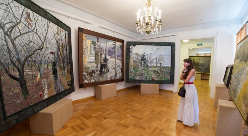 В экспозиции представлены 40 работ, охватывающие временной период от Куликовской битвы до первого десятилетия XX века. Среди них - «Царская Голгофа», «Братия», «Царёво молчание», «Зонтик», «Великокняжеский меч» и другие.