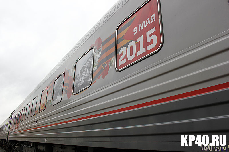Поезд-музей состоит из 12 вагонов: 3 из них – служебно-бытовые, 9 – экскурсионные. В этом году в состав впервые включили вагон, посвящённый 70-летию Великой Победы. С него, собственно, и начинается экскурсия.