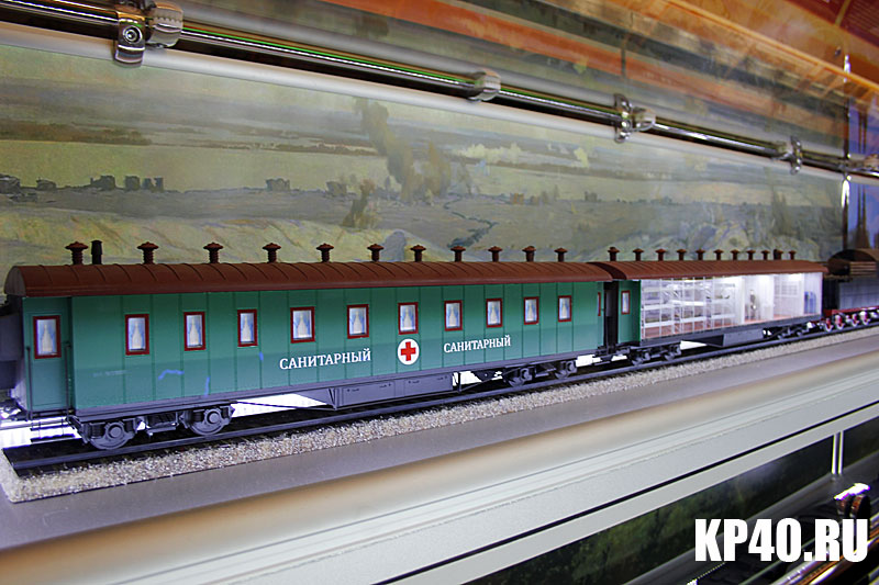 В экспозиции, посвящённой 70-летию Великой Победы, также представлены макеты санитарных поездов и составов для перевозки военной техники и боеприпасов.