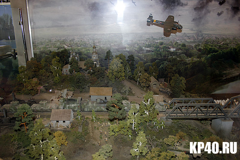 Это макет города Витебска. Экспонат посвящён строительству в городе железнодорожной переправы в июне 1944 года.