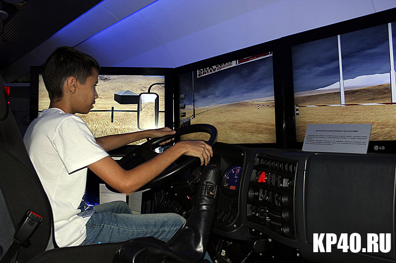 Здесь же можно было «порулить» КамАзом. На вопрос: какое отношение он имеет к железной дороге – экскурсовод ответил, что завод является партнёром РЖД. «Покататься» на большегрузе пожелали не только дети, но и их папы. Правда, уже через несколько минут они начинали «буксовать». Тренажёр находится на динамической платформе и полностью имитирует нахождение за рулём.