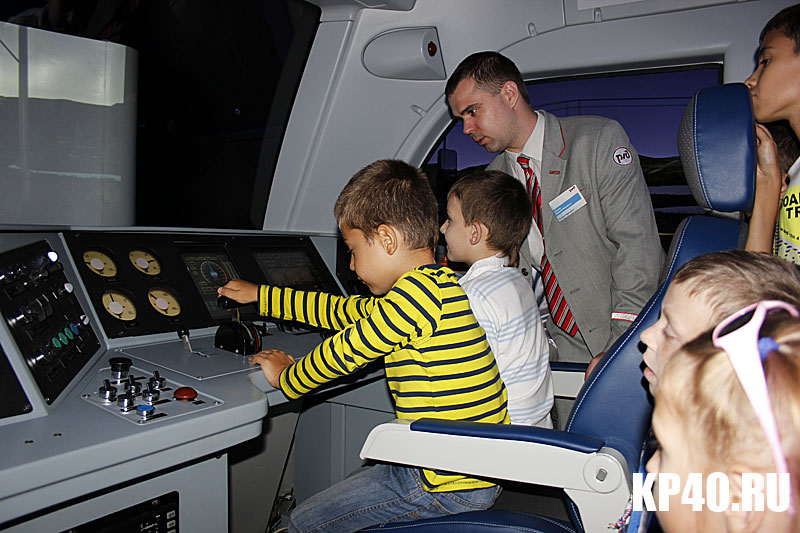 Пожалуй, самым интересным, особенно для маленьких экскурсантов, которых было немало, стал вагон с тренажёрами. Практически все желающие могли на некоторое время почувствовать себя машинистом высокоскоростного поезда «Ласточка». Рычаги управления, установленные в макете, являются настоящими, а их расположение соответствует оригиналу.