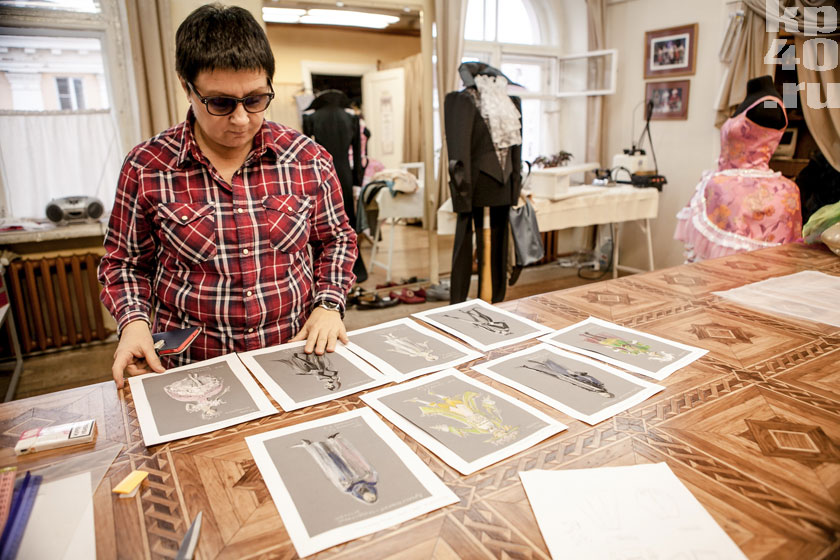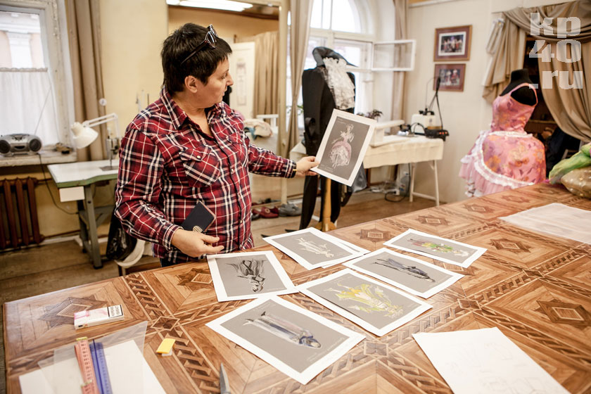 - В спектакле 8 персонажей, все – двойные. Костюмов – столько же, они шьются индивидуально на каждого актёра, - говорит мастер пошивочного цеха Людмила ШУБИНА. – Они ведь разные: размер, рост: кто-то повыше, кто-то пониже.