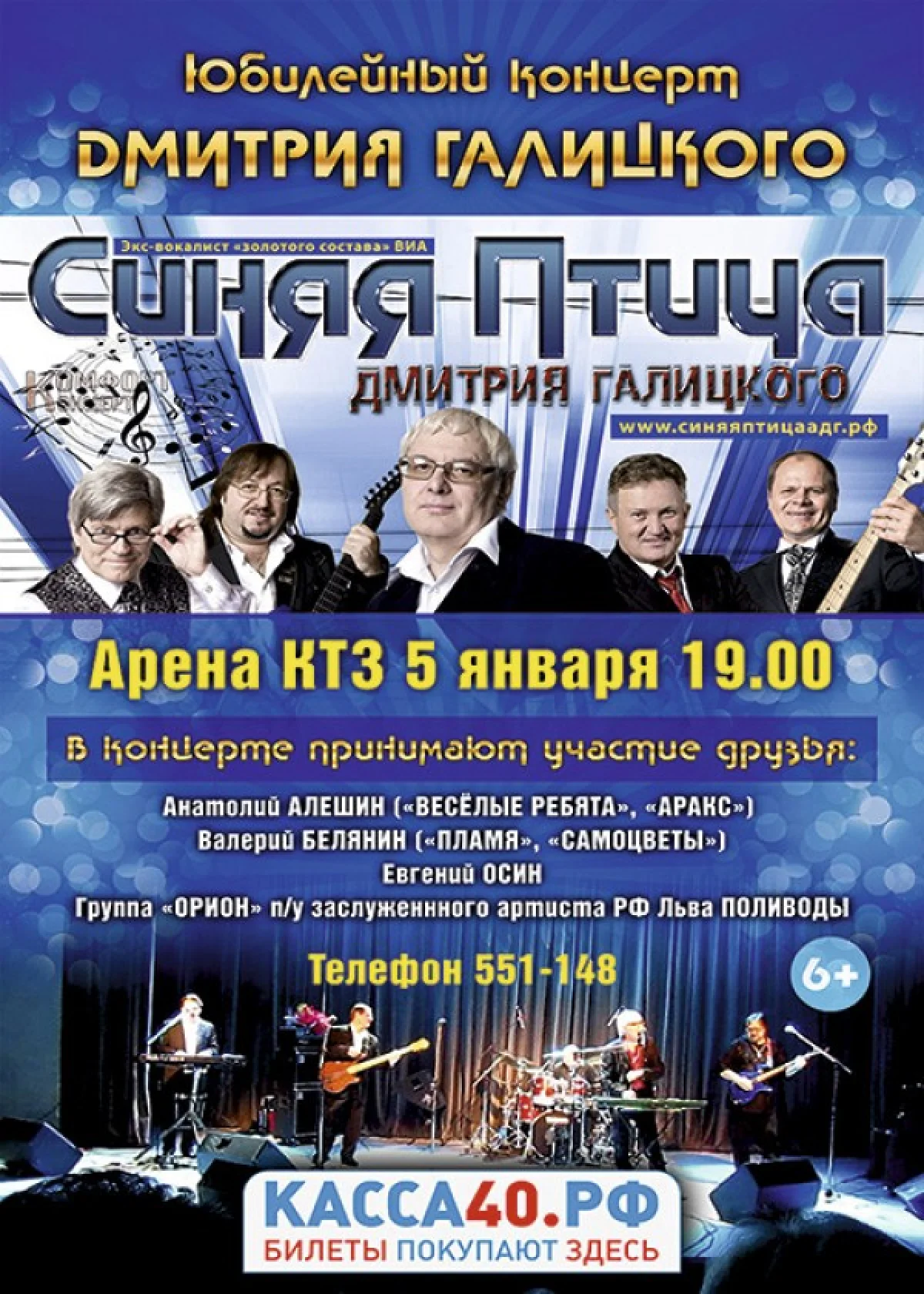 Разыгрываем билеты на юбилейный концерт группы «Синяя птица» Дмитрия Галицкого. Он пройдёт в Калуге вечером 5 января.