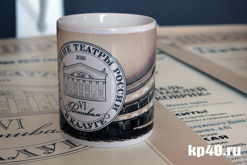 … часы, кружки и подушки с символикой Калужского драмтеатра.