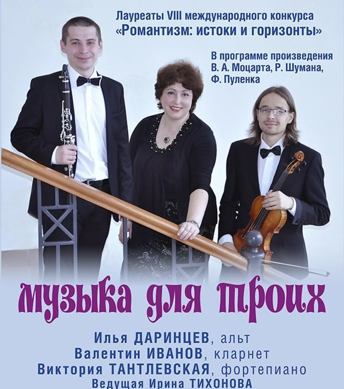 В рамках фестиваля «Калужская осень» на сцене Дома музыки 14 сентября выступят Илья Даринцев (альт), Валентин Иванов (кларнет) и Виктория Тантлевская (фортепиано).