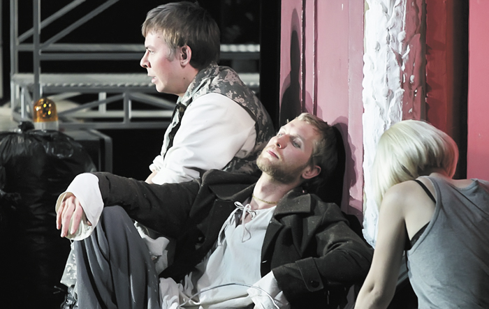— Я не думал, что буду играть Ромео. Это одна из самых сложных для меня ролей. На уроках по мастерству на 2-м курсе работал параллельно над двумя совершенно разными образами у разных педагогов: пытался вжиться в образ пожилого белого офицера в эмиграции и перевоплотиться в 18-летнего юношу. Так вот, роль юноши, которая мне была ближе по возрасту, давалась очень-очень сложно! Я тогда был в отчаянии. Взывал к педагогу: «Что мне делать? Я всё продумал, составил конспект, прописал внутренние монологи! Теоретически я готов, а практически ничего не получается!» На что учитель ответил: «Твои роли возрастные. Твоё время актёрское начнётся ближе к сорока. Вот там у тебя всё будет получаться. И не переживай! Ромео тебе всё равно никогда не придётся играть». И вот вам, пожалуйста, подарок судьбы! Но ту роль юноши я всё-таки осилил. Она вдруг получилась в один прекрасный день. И во многом благодаря моей партнёрше Кристине Стебуновой, которая обладает даром партнёра-учителя. Но вот судьба даёт такое задание — Ромео, и надо его выполнять. Много думал, читал, советовался с педагогами. Очень благодарен Светлане Александровне Никифоровой, Владимиру Сергеевичу Прудникову и Ольге Викторовне Петровой, которые, не жалея своего времени, репетировали с нами утром, днём, вечером и ночью. Коль дан такой шанс, надо оправдывать доверие всех — педагогов, режиссёра, директора, родителей. На данном этапе я доволен хотя бы тем, что роль не стоит на месте. Я стараюсь учиться.
