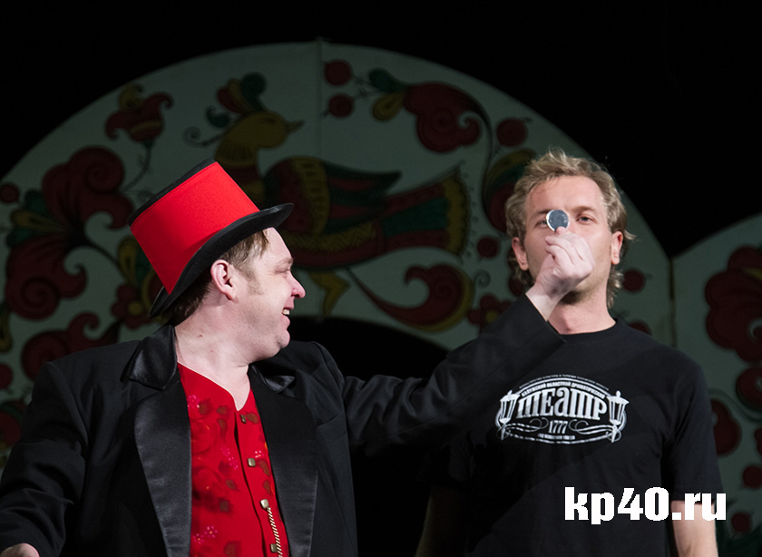 - Это такой волшебный аппарат, в который вкладываешь бумажку, крутишь ручку – и бумажка превращается в денежку! Я использовал эту машинку в другом своём детском спектакле, он назывался «Чёртова невеста», - рассказывает Владимир Глазков. – Когда мы ездили с ним по детским лагерям, эту машинку дети выкрадывали четыре раза! Решили возродить её.