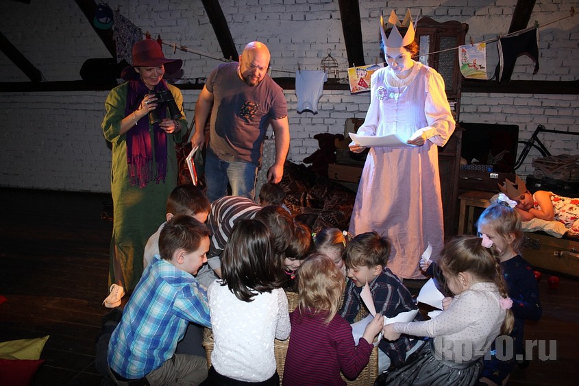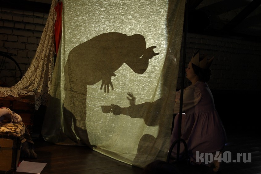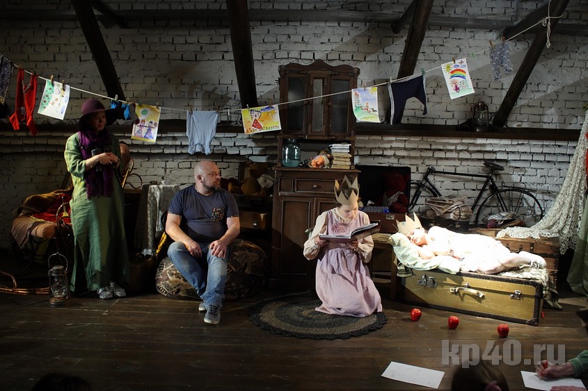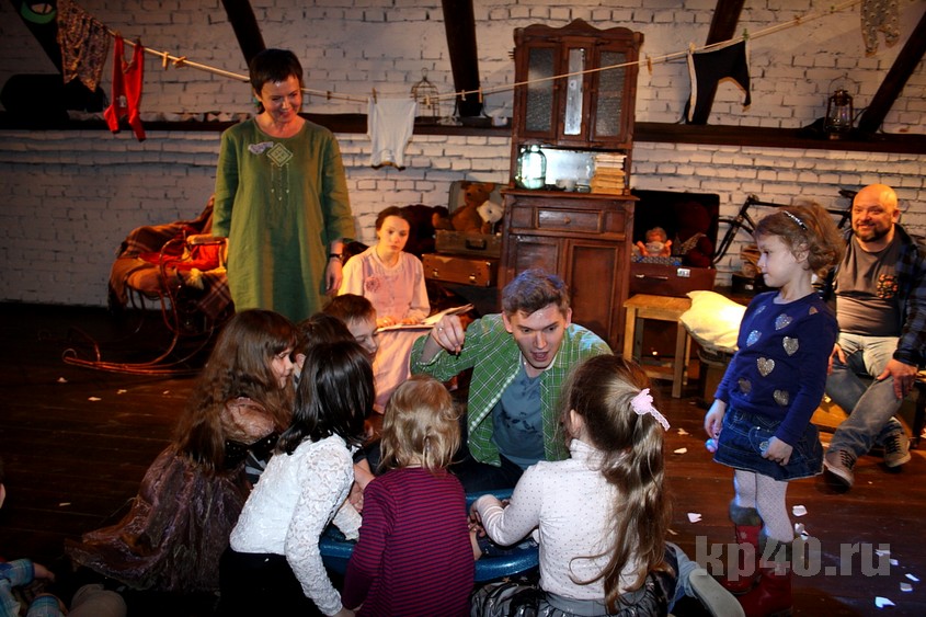 Вечером в субботу, 10 февраля, в драмтеатре происходило маленькое чудо. Сцена под крышей на один час превратилась в уютную гостиную: книжный шкаф, старые игрушки, детские рисунки. На полу разбросаны подушки – посадочные места для маленьких зрителей. Родители рассаживаются на лавочках. В конце зала – столик с конфетами и баранками: после представления будет чаепитие.