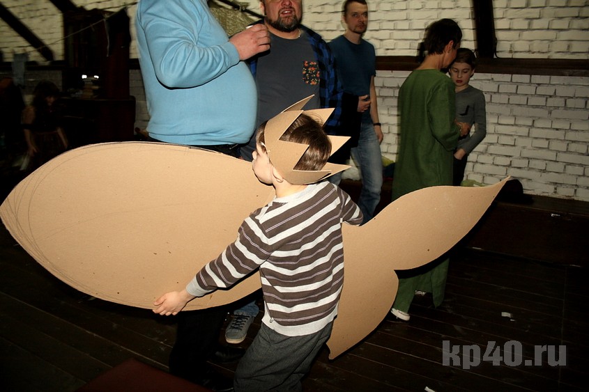 Если очень сильно верить, то даже из такой маленькой икринки может вырасти настоящий кит. Актёры-любители Максим Васюнов (слева) и Арсений Рейнус.