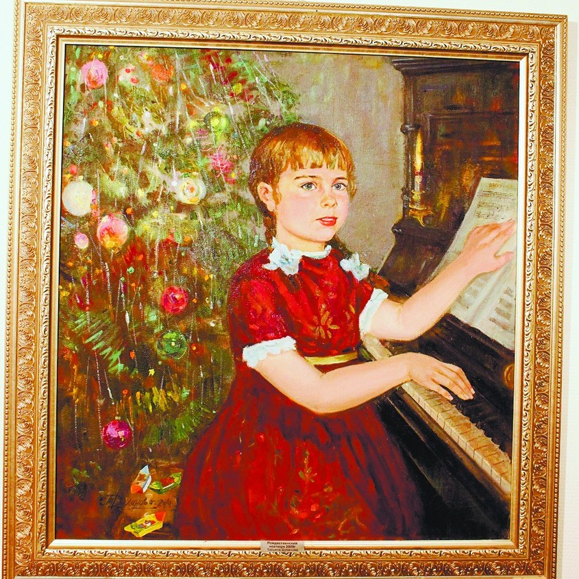 «Рождество. Маленькая Аня играет свой первый ноктюрн. Очень старается. Хотелось передать торжество праздника и вдохновение ребёнка».