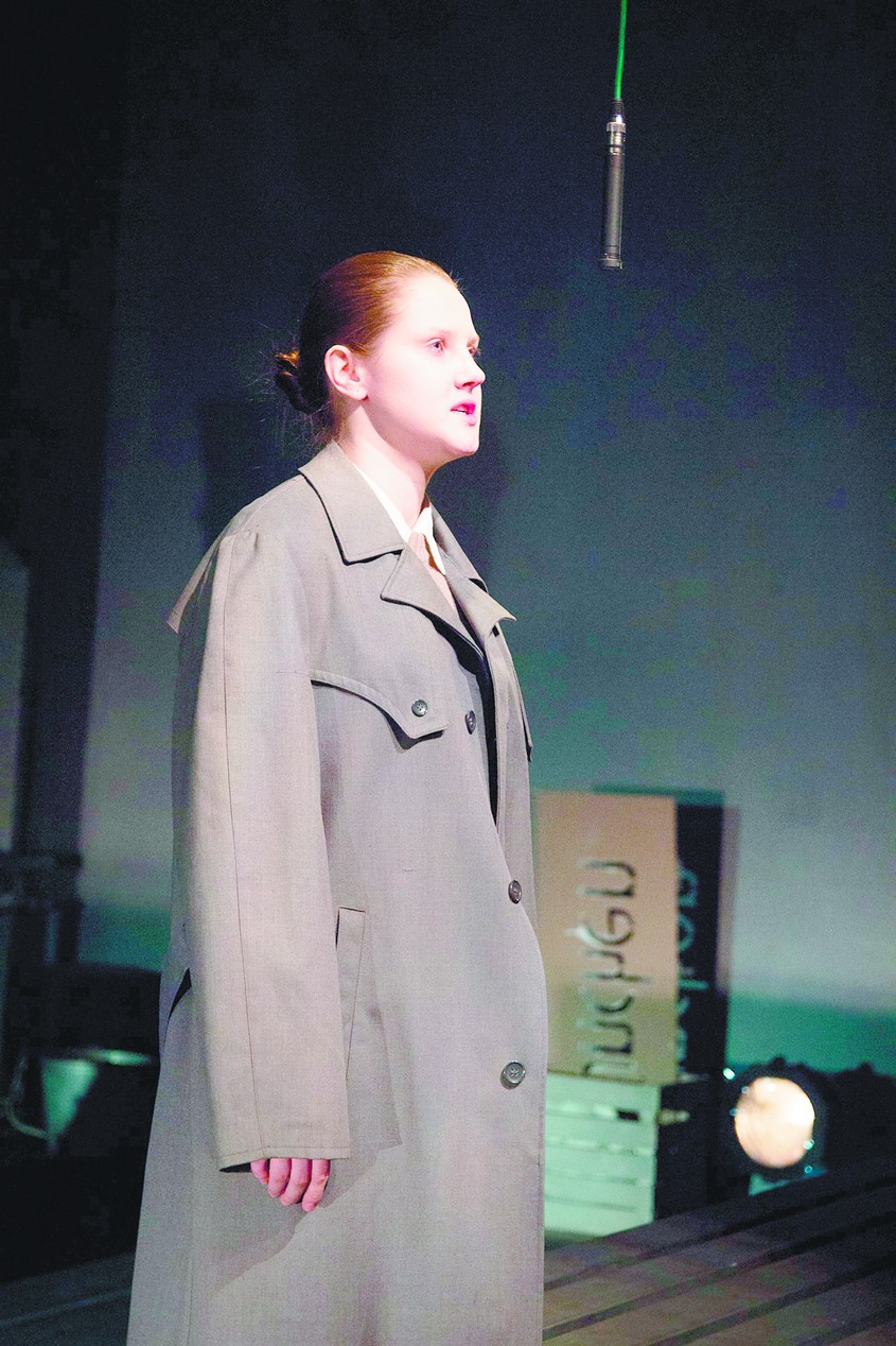 Яна Селезнёва заявлена и как автор инсценировки. Внимательно ознакомившись с повестью, не понимаю, в чём, собственно, заключалась инсценировка. Весь литературный текст аккуратно зачитан со сцены. А поскольку события многих десятилетий изложены у Водолазкина обзорно на 25 страницах, получился своеобразный конспект то ли романа, то ли пьесы. Как будто переводчик за кадром оглашает субтитры: «В 1955 году возоб новляется работа военного училища, и Ральфу предлагают вернуться на службу». З ачитывать ухитряются даже пейзажи. Как-то неудобно уже напоминать, что театр являет зрителю действие здесь и сейчас, но в нашем случае действия нет, а есть только его пересказ.