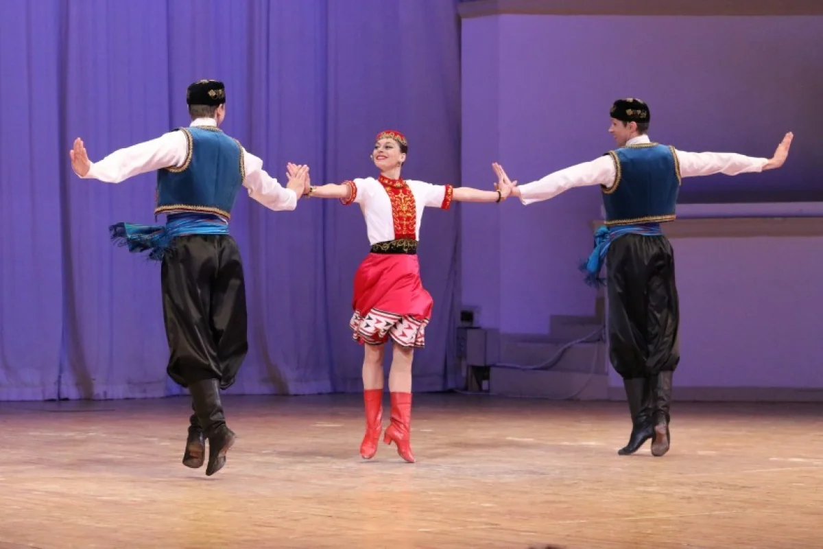 Зрители начали собираться задолго до концерта, а к 3 звонку зал был уже практически полон. Свет погас, и голос диктора попросил выключить звук у мобильных телефонов, коротко представил публике ансамбль и перечислил номера, которые будут в первом отделении. А после этого на сцене не осталось ничего, кроме музыки и танцев. Началось представление с русского танца «Лето», изображающего праздник урожая, во время которого все жители собрались поздравить пару молодых. Девушки в красных сарафанах и парни в белых рубахах чередовали плавную хореографию с настоящей акробатикой, кружились в хороводе и образовывали замысловатые и завораживающие фигуры на сцене. Затем привычные нам движения из русской хореографии сменились экзотическим калмыцким танцем – ещё одним безусловным шедевром ансамбля. Зал, затаив дыхание, наблюдал за поистине гипнотическими движениями троих артистов, одетых в чёрные национальные костюмы. Танцоры демонстрировали удивительное владение каждым мускулом своего тела и время от времени зависали в воздухе так, что порой казалось: законов гравитации для них не существует.