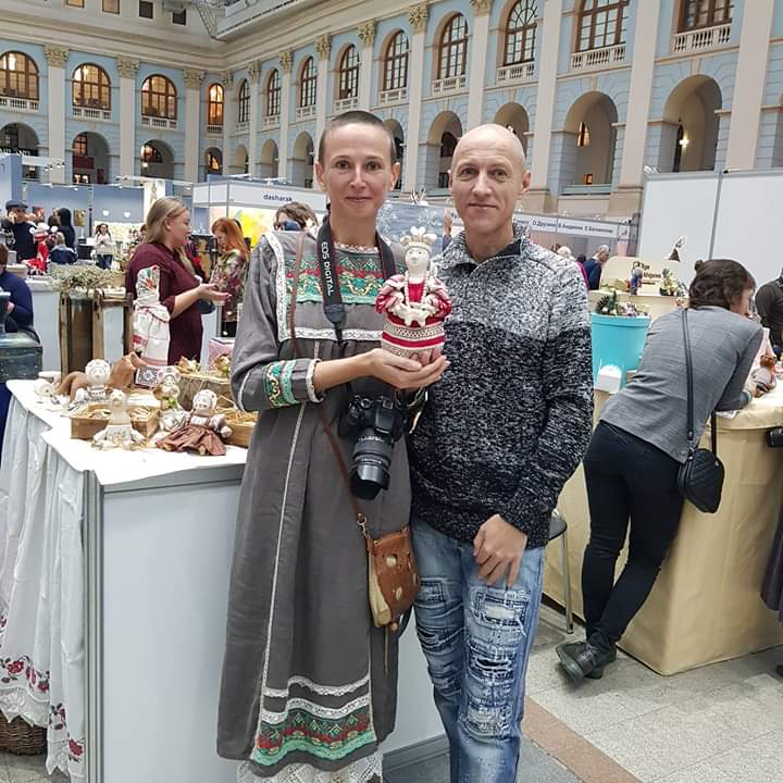 У Михаила вообще талант — он и лепит лучше меня, и куклы-грематухи у него все такие ладные и складные, он их с такой любовью и нежностью делает. А у меня с глиной странные отношения: чтобы ни лепила — всё медведь выходит. Выложу в соцсетях фото своих игрушек — подруги пишут: «Наташа, сразу видно, что ты лепила, у тебя и медведи женственные». Михаил помогает мне и что-то выкроить, и вышивает, и даже в последнее время освоил швейную машинку. Хотя наряды, шитьё — это мое. Сейчас — этап сборки, я его не очень люблю, поэтому ручки куклам пришивает тоже Михаил.