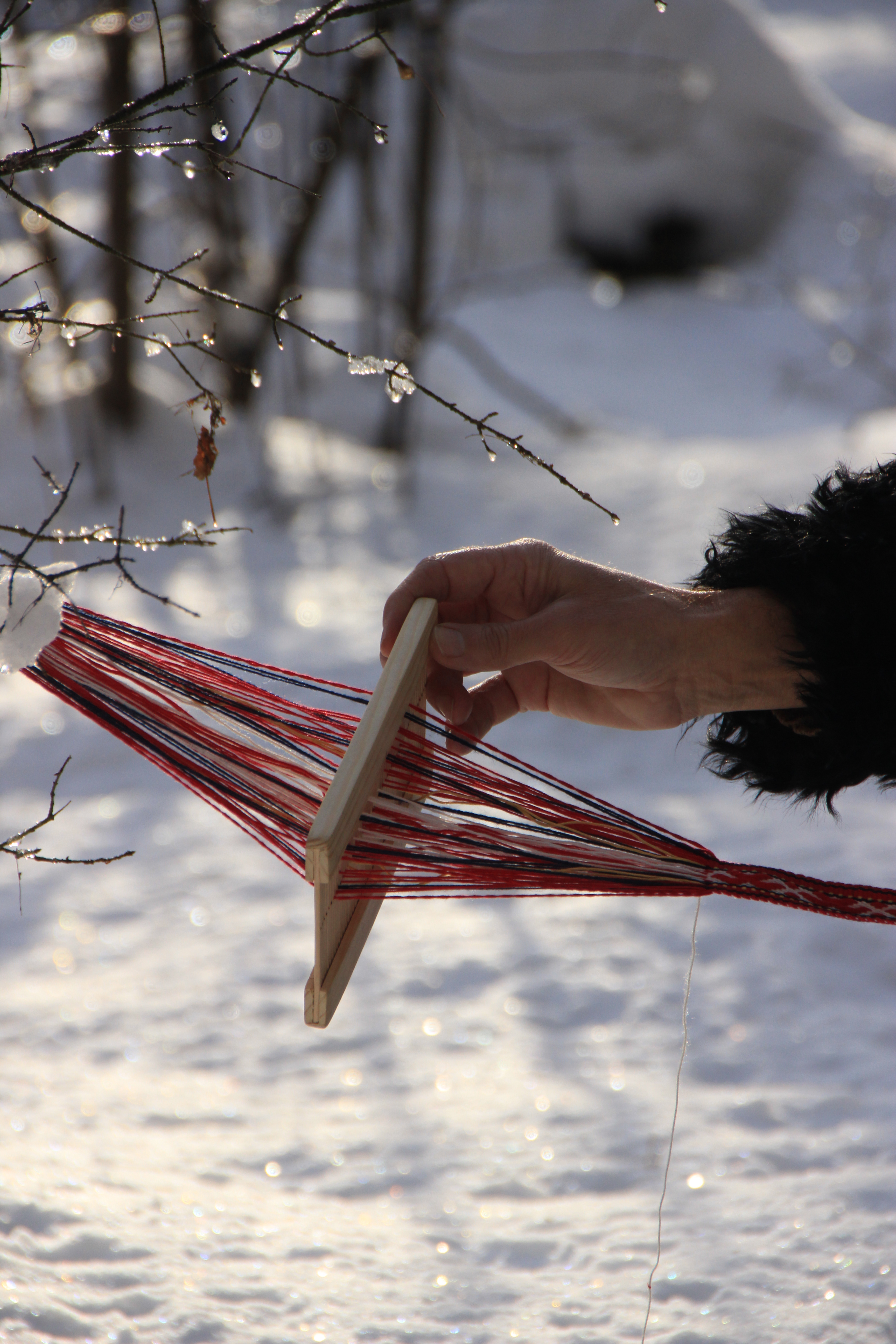 — Когда мы поняли, что хотим сделать русский костюм для кукол точно так, как его делали в старину, занялись ткачеством. В древние времена ткали мужчины, потом женщины у них это ремесло отобрали. У нас в семье ткёт Михаил. Дома есть ткацкий стан, но чаще Михаил ткёт на бёрдо — это более простой инструмент, для кукольных костюмов много ведь ткани не нужно. Бёрдо заправляется 97 нитями, ткацкий стан — 600 нитями и больше. И на это уходит несколько часов. Браное ткачество достаточно сложное, не каждая мастерица могла его освоить. И, когда ткали, не разговаривали, дабы не сбиться. Потому что узоры не рисовали, а запоминали наизусть, главным было ничего не перепутать.