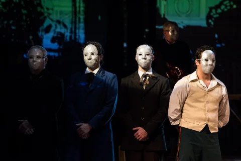 Режиссёр Пётр Орлов перенасытил своё творение символическими деталями. Тут и актёры в масках, и разбросанные по сцене красные и белые листы бумаги, и постоянно возникающий звук пилы. Сценография также показалась излишне претенциозной. Особенно на фоне минималистичных «Иванова» и «Отцов и сыновей».