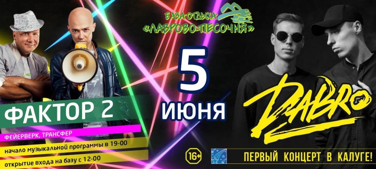 В ближайшую субботу, 5 июня, на базе отдыха «Лаврово-Песочня» состоится открытие летнего сезона. В этот день там пройдет концерт, на котором выступят группы «Фактор 2» и «DaBro».