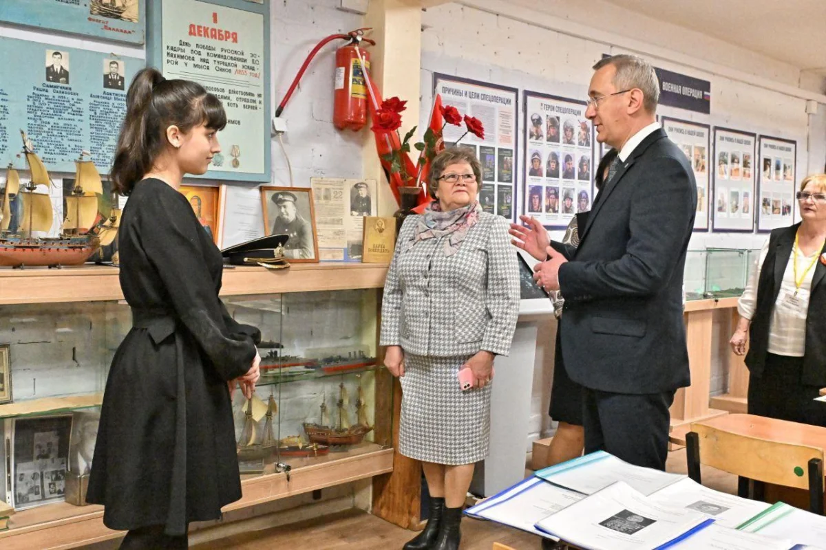 Глава региона рассказал, в частности, о кабинете географии, где на полу изображена карта арктического шельфа, а посередине класса возвышается настоящий штурвал.