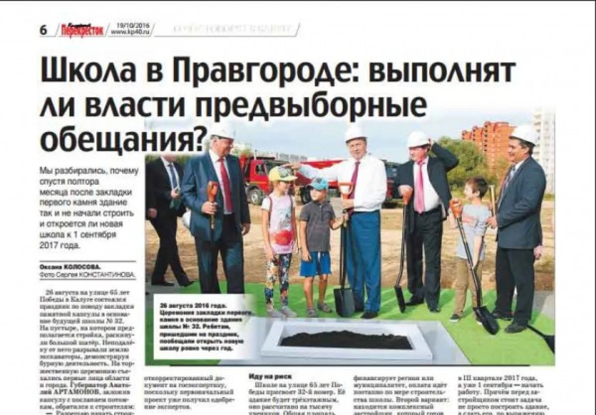 Поставить эту самую точку областные власти обещали к 1 сентября 2017 года. Дата была озвучена в конце августа на церемонии закладки памятной капсулы в основание школы. Возводить здание должна одна из калужских компаний-застройщиков в рамках федеральной программы «Содействие созданию в субъектах РФ новых мест в общеобразовательных организациях».