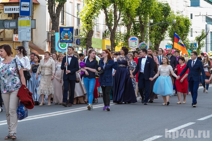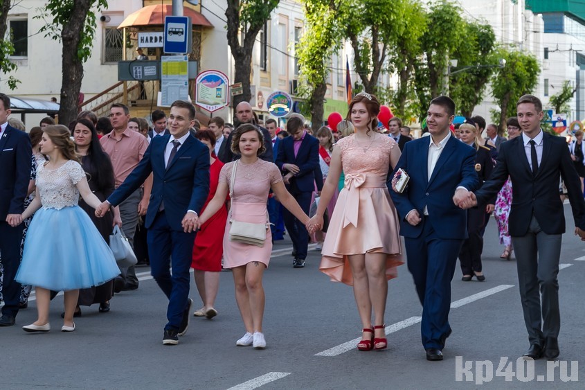 В субботу, 24 июня, в Калуге прошло традиционное шествие выпускников. Школьники собирались на площади Победы, возложили цветы к Вечному огню и направились к Старому Торгу, где их ждал концерт и дискотека.