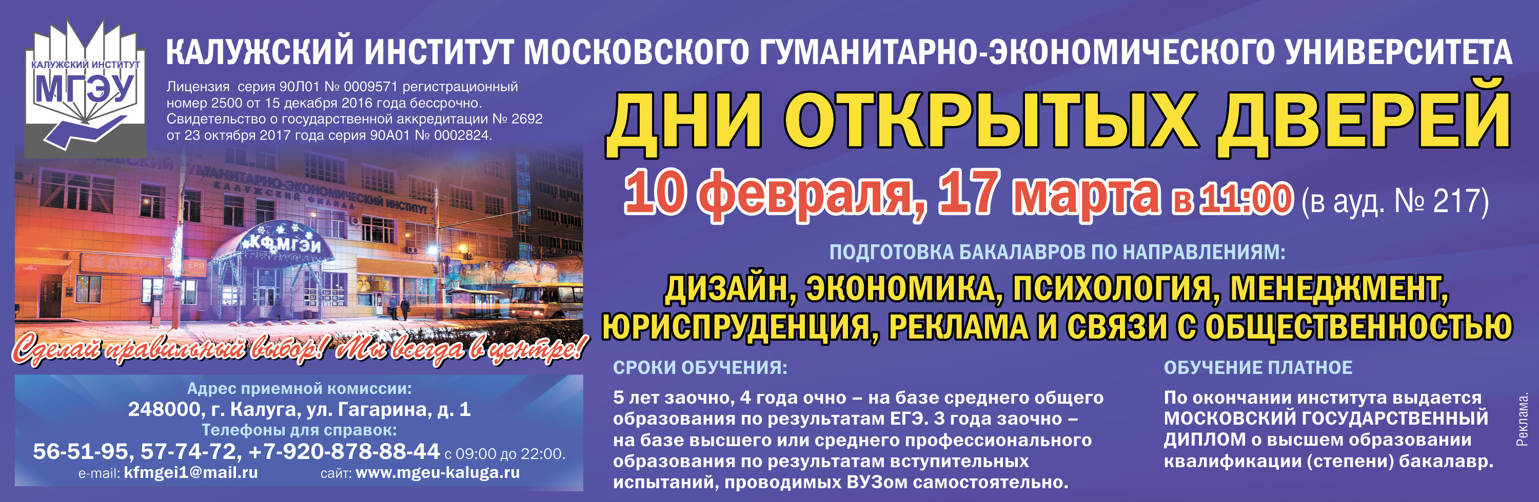 13 образовательных организаций высшего образования, в том числе - 1 государственный вуз (КГУ им. К.Э. Циолковского) и 8 филиалов государственных вузов, 2 негосударственных вуза и 2 филиала негосударственных вузов.