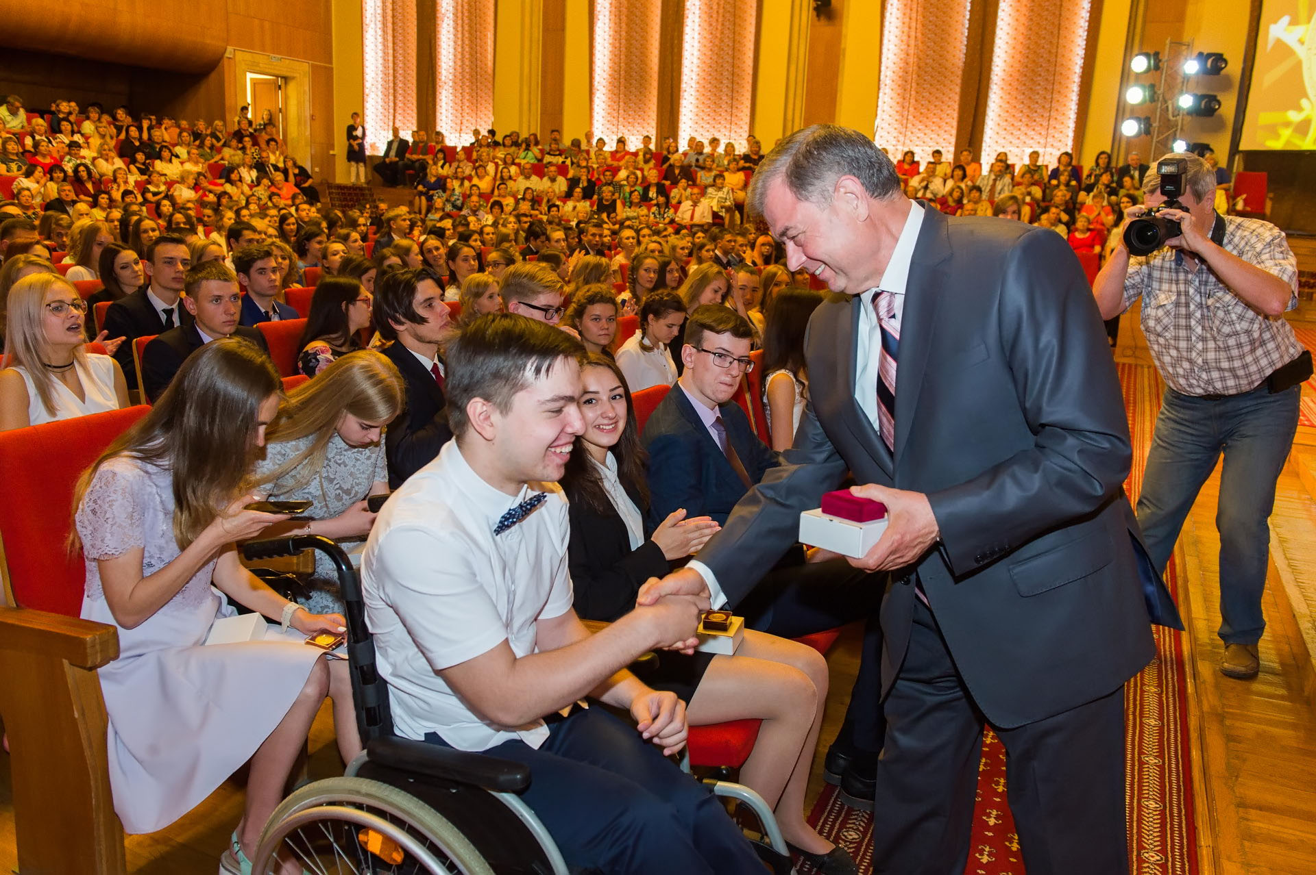 Анатолий Артамонов поздравил выпускников и подчеркнул, что самое важное в жизни – не оценки, а умение работать на результат и стремление быть успешным человеком.