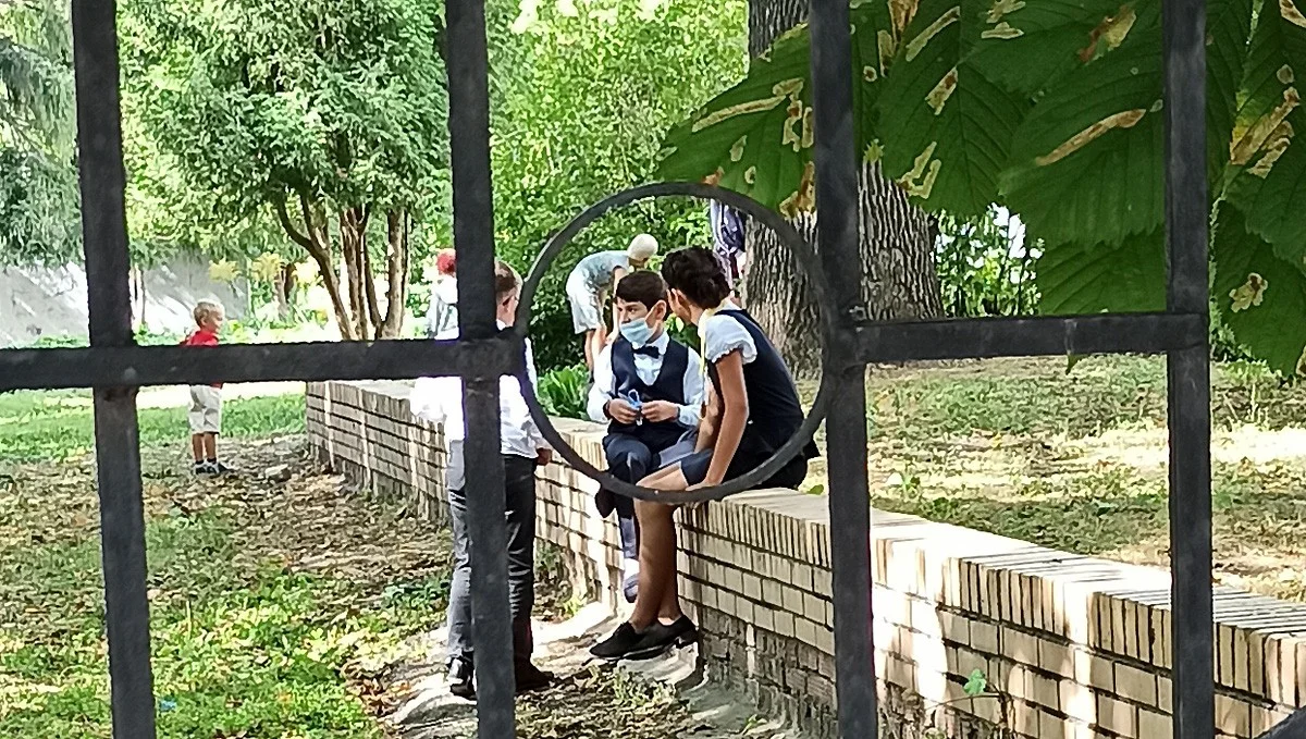 Родителей держали подальше от детей, так что многие из них не смогли понаблюдать за своими чадами и первосентябрьским действом, так как вынуждены были остаться за воротами, вне зоны видимости внутренних дворов, где и проходили торжественные мероприятия.