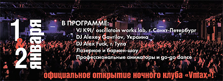 Январь начнется с официального открытия ночного клуба "Vmax".