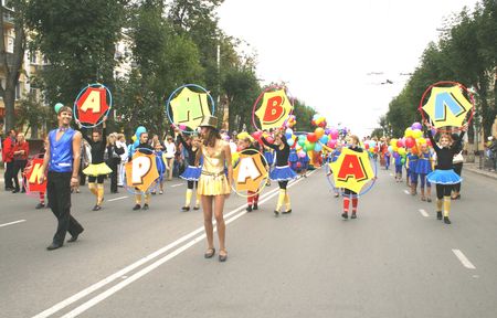 костюмах и просто с хорошим настроением кричали ура, несли транспаранты