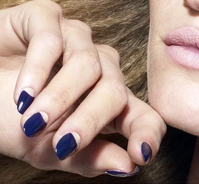 Классический голливудский маникюр — это френч наоборот, когда «улыбка» рисуется не на кончике, а у основания ногтя. Накрасьте ногти темным лаком и дайте высохнуть. Затем ярким лаком для nail-дизайна выделите лунку.