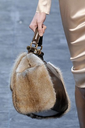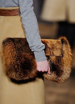 Michael Kors уделил меховым сумкам особое внимание: в его коллекции осень-зима 2010-11 теплую сумку можно подобрать практически к любому поводу. Даже самому торжественному. Клатч из меха бурой лисы и «влажной», блестящей кожи подойдет к черному платью и брюкам с высокой талией.