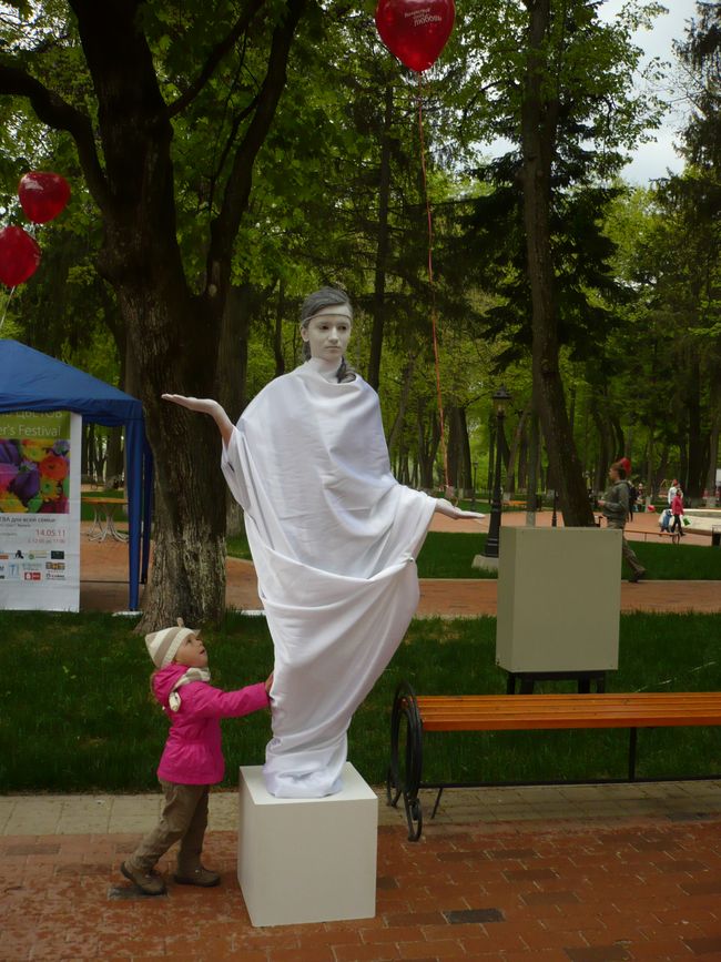 Все пришедшие на праздник охотно принимали участие в фотосессии от Дмитрия Демидова «Подари себе улыбку» и фотографировались с живыми скульптурами Ирины Меньшиковой.