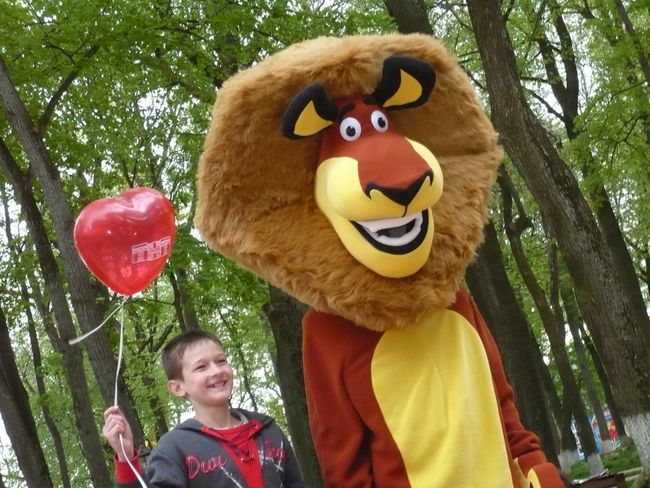 Веселый лев из мультфильма "Мадагаскар" позировал для фото всем желающим.
