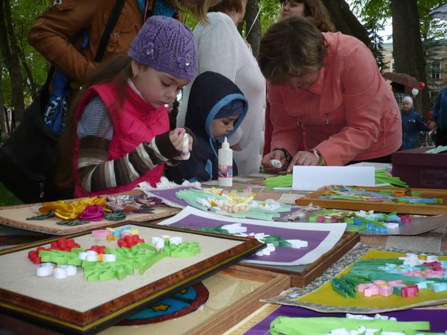 Маленьких гостей праздника ожидало много интересного. Для них были организованы занимательные мастер-классы, где каждый мог научиться и сам попробовать вырезать из бумаги потрясающей красоты птиц и зверей, делать необычные поделки из цветного картона, ткани и войлока. Герои сказок из кукольного театра и устроили для малышей целое представление с веселыми подвижными конкурсами, победители которых получали подарки от спонсоров.