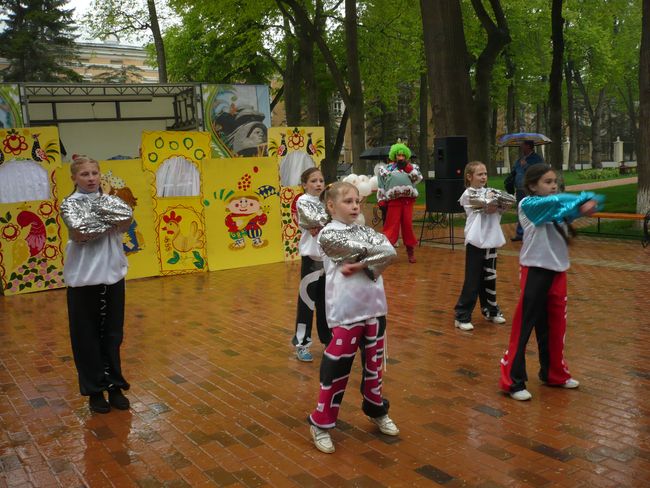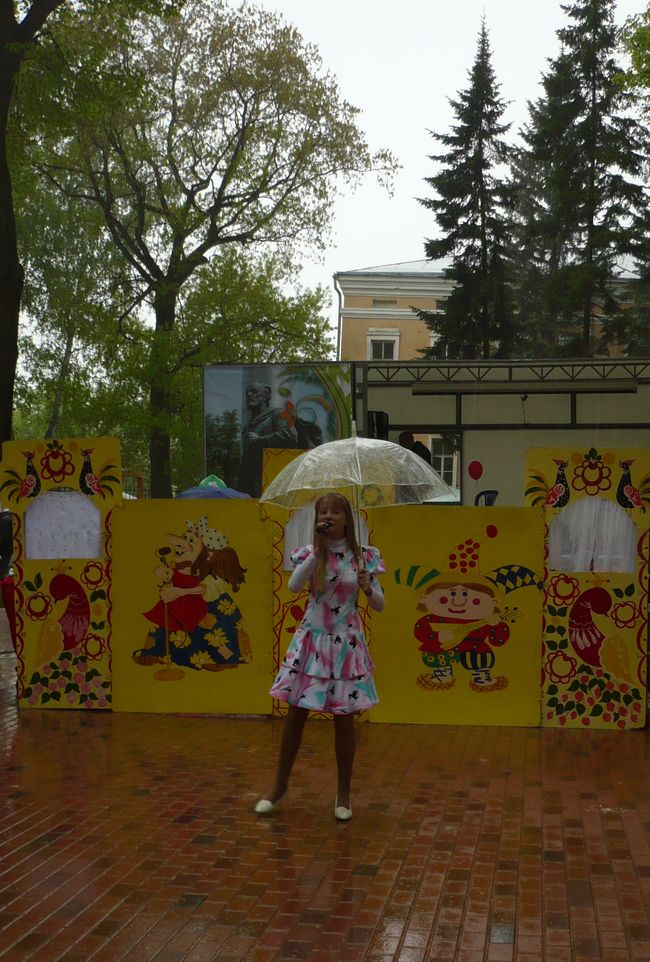 Юные артисты выступали даже под дождем,