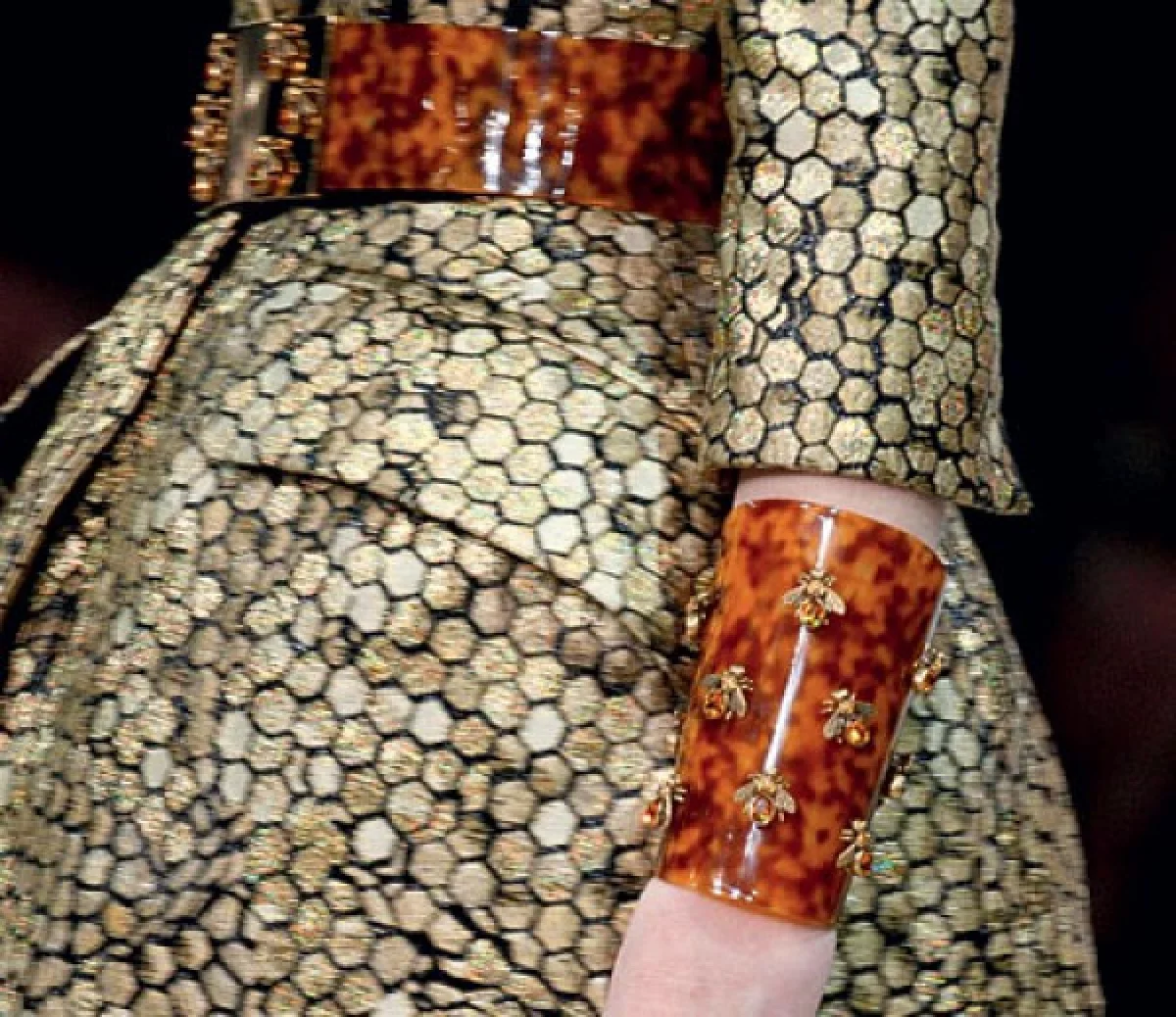 Что еще? В моде восточные мотивы, многослойность. В кольцах, браслетах и колье используются вставки из кожи. Можете носить несколько браслетов на одной руке, занимая все пространство от запястья до локтя (лишь бы не путать «французское с нижегородским»!), а кольца — поверх перчаток.