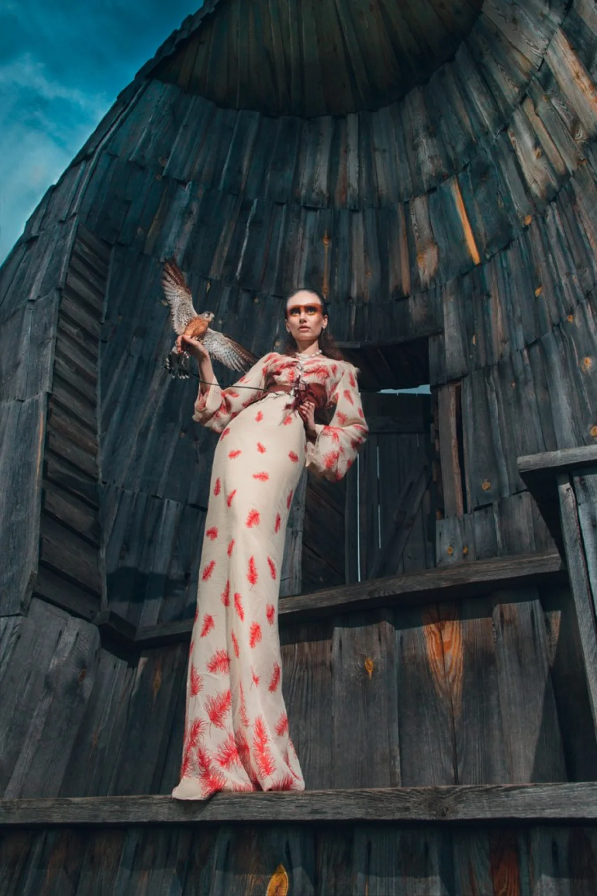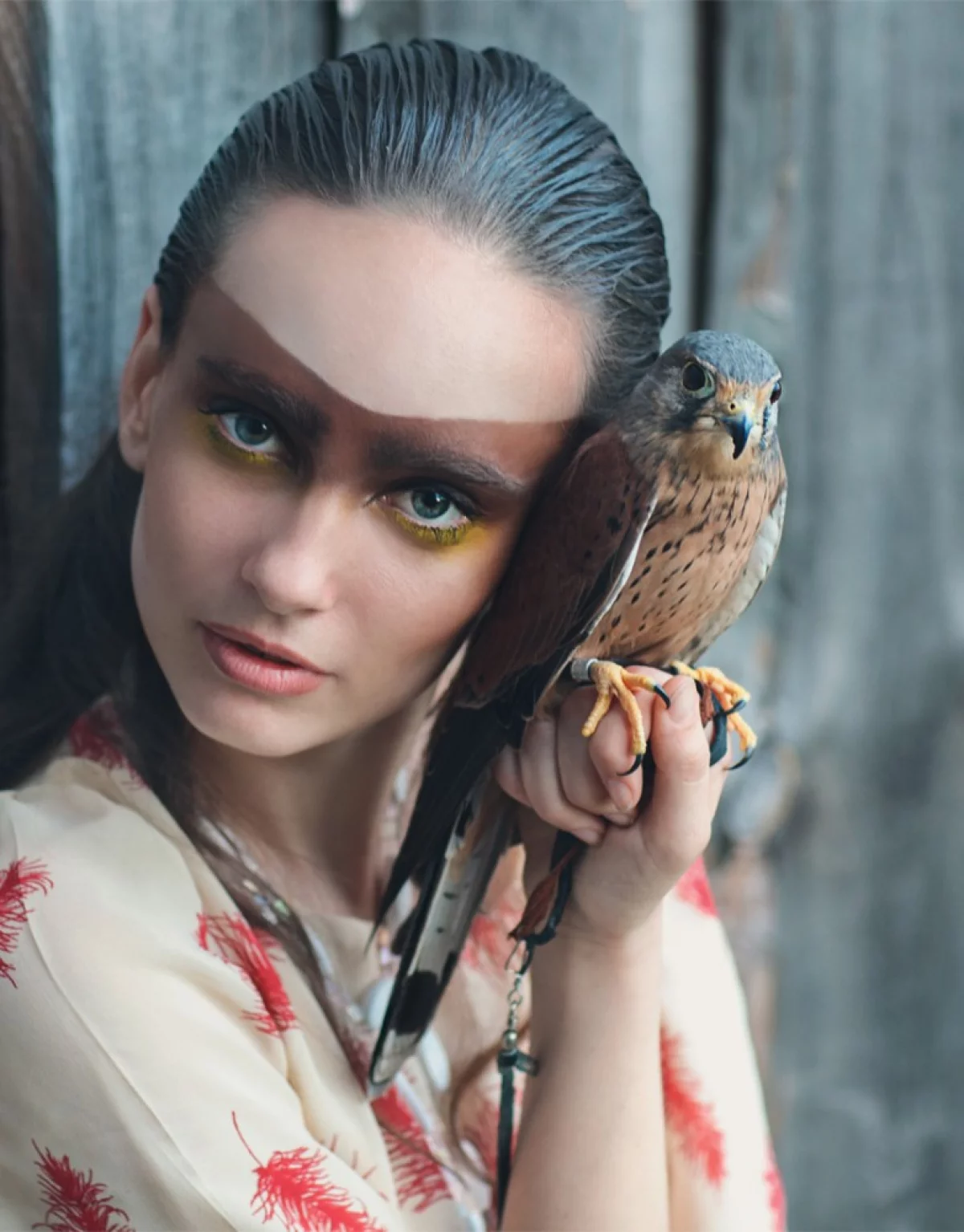 Интересная фотосессия получилась с соколом в Николо-Ленивце. Птица — существо непредсказуемое. Сокол все время пытался улететь. Я разговаривала с ним, просила посидеть спокойно. Чем-то нереальным казалась подводная фото-сессия в бассейне. Я совершенно не умею плавать. Пришлось научиться нырять. Но все равно боялась, что не смогу одновременно и задерживать дыхание, и позировать. Ныряли мы с гантелькой — с ней удобно, быстро уходишь под воду. И все прошло здорово, получились очень интересные снимки.