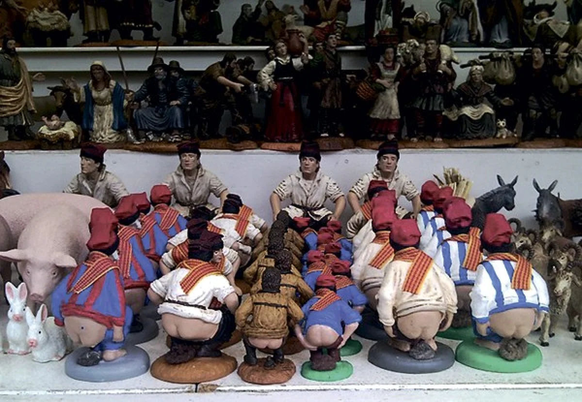 В Барселоне в начале декабря начинают работать две крупные ярмарки — «Санта Люсия» (Fira de Santa Llucia) и «Саграда Фамилия». Первая проводится уже более двухсот лет на площади у Кафедрального собора (Plaza de la Catedral). Здесь можно найти уйму елочных игрушек, рождественские украшения для интерьера и экстерьера, качественные эксклюзивные сувениры, вышивки и бижутерию, антикварные безделушки и украшения, а также традиционные каталонские сувениры: это — простите — сaganer (какающий человечек) или сaga tіo (какающее бревно). Вот это была для меня находка!))) С вашего позволения, в дальнейшем буду величать эти бревна кагатио, а человечков каганер. А теперь о том, откуда что взялось.