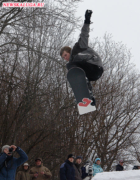 А вот погода сноубордистов подвела. За ночь подтаял и приготовленный заранее трамплин, и снежное покрытие самой трассы, на дно оврага стекали широкие ручьи, что, впрочем, не остановило ни организаторов, ни самих участников. Кое-кто из сноубордистов использовал доску как лопату. С помощью сноуборда ребята накидывали снег на трассу, чтобы можно было начать соревнования. Это мероприятие можно смело назвать «соревнования по водному сноуборду».