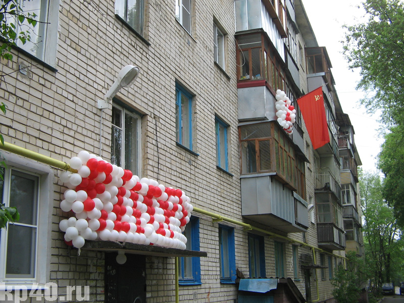Вот так украсил калужанин козырек подъезда и балкон квартиры, где живёт его 90-летний дед-фронтовик. (ул.Жукова) .