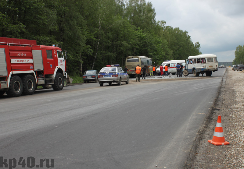 Сегодня утром, 18 мая, около 12:00 на трассе под Калугой, недалеко от поворота на деревню Колюпаново, столкнулись два пассажирских автобуса. Первый - «КИА» - осуществлял рейс по маршруту Москва – Козельск, второй привез на трассу дорожных рабочих. Дорога сейчас как раз ремонтируется.