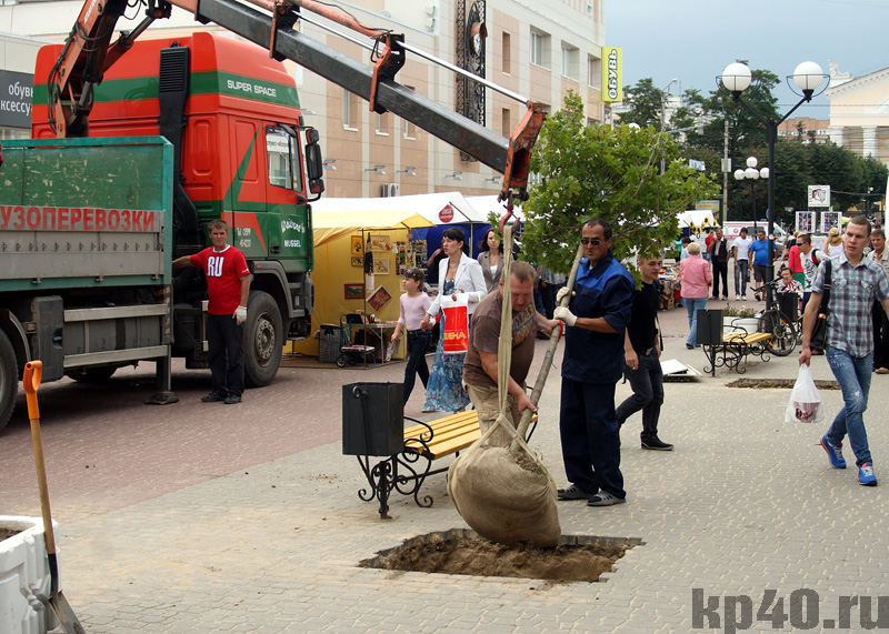 Озеленение калужского «Арбата» завершилось успешно. Как мы уже писали, работы на улице Театральной начались на прошлой неделе, а в субботу, 18 августа, они благополучно завершились и там появились 12 кленов.