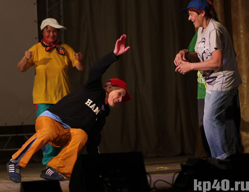 Сегодня, 5 октября, в день пожилого человека на сцене бывшего клуба КЭМЗа прошел КВН. В юмористической борьбе состязались старейшая калужская команда КВН «Крутые перцы», с участниками в возрасте от 70 до 90 лет с молодой командой «Бродячие артисты». На КВН пригласили ветеранов и других пожилых людей. Поздравить их с днем пожилого человека пришли министр по делам семьи и демографической политике Светлана Медникова, начальник управления соцзащиты Калуги Зоя Артамонова, заместитель председателя Заксобрания Галина Донченкова и другие представители городской и областной администрации. Они пожелали активным бабушкам и дедушкам здоровья, тепла и радости. И КВН начался. Обе команды искрометно шутили, вместо традиционного конкурса с вопросами общались частушками, а в качестве домашнего задания и вовсе удивили зал. Командам было поручено разучить танцы. Молодым – те, которые танцевали бабули в молодости, а бабулям – современный танец. Зал просто неистовствовал, когда под энергичный хип-хоп на сцену выбежала старейшая команда и совсем неплохо изобразила основные па этого танца. На головах, правда, дедушки не крутились, но венчал танец внушительный и вполне профессиональный шпагат.