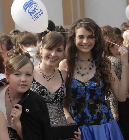 Веселье выпускниц 1-й калужской школы Пронькина Мария и Меньшикова Инна не давало покоя их одноклассникам. Девчонки упивались интересом со стороны зевак, а до мальчишек-одноклассников им не было дела, как те не пытались привлечь к себе внимание.