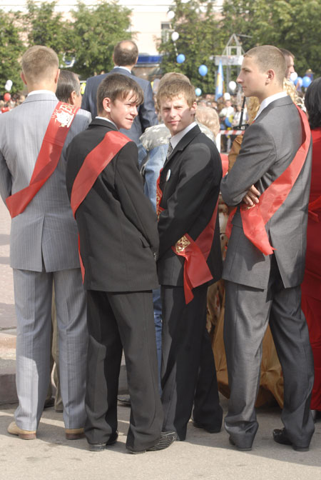Выпускники держались по-детски скромно на фоне повзрослевших выпускниц, надевших вечерние платья, сделавших замысловатые прически и макияж.
