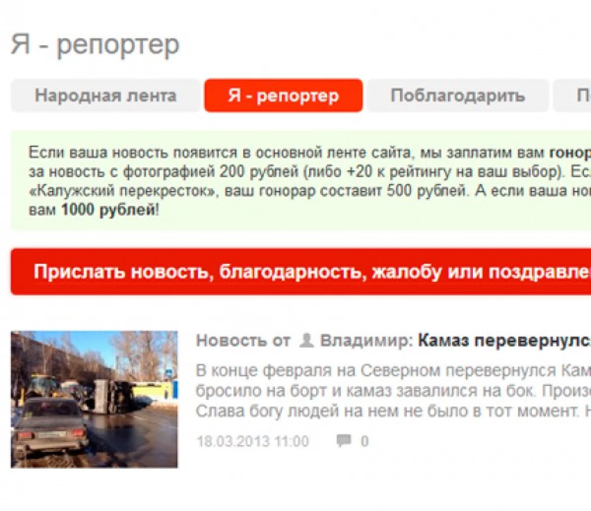 Второй сервис – «Глас народа». Теперь вы можете сами писать новости! И главное, мы готовы платить вам за них гонорары! Сколько и на каких условиях, читайте в описании раздела «Я – репортер».