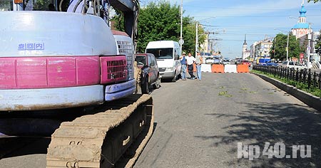Улицу Кирова закрыли на реконструкцию поздно вечером в среду, 9 июля. Сегодня утром корреспонденты «Калужского перекрестка» побывали в центре города и выяснили, что движение по улице перекрыто пока лишь на той полосе, что ведет от перекрестка улиц Кирова и Ленина к площади Победы. Проехать в обратном направлении еще можно, но троллейбусные линии уже обесточены. Впрочем, сами ремонтные работы пока еще не начались. Из строительной техники мы обнаружили на улице Кирова один-единственный трактор, возле которого стояли несколько рабочих. На наш вопрос, когда же начнется реконструкция, один из них ответил очень расплывчато:
